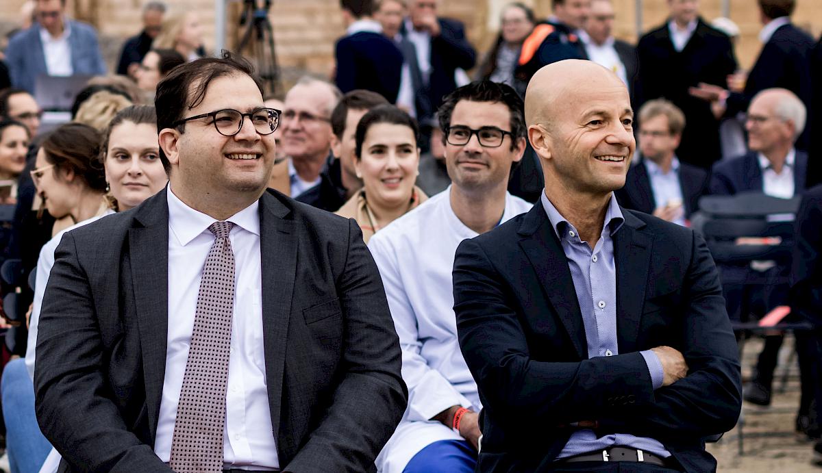 Besonderer Tag für das Herzzentrum: Zusammen mit über 150 Gästen wurde in der Baugrube feierlich der Grundstein für den Neubau des Herzzentrums gelegt. Das neue UKB-Herzzentrum kostet 140 Millionen Euro, hat über 1000 Räume und wird 2024 bezogen.